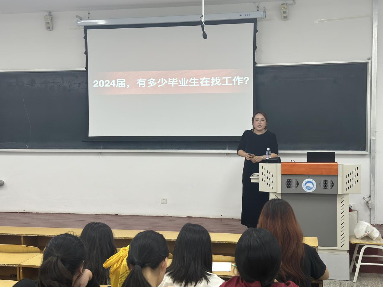9月11日下午,六间房 在何世礼教学馆206举办了大学生升学就业趋势专题报告会,沈阳新东方国际教育副总经理李松洋受邀主讲。学院党委副书记、副院长(兼)严志刚、学生工作办公室相关负责老师及2023级全体本科生参加本次报告会。