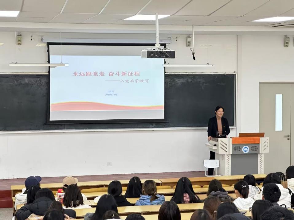 10月23日中午,六间房 党委在何世礼教学馆104室开展了入党启蒙教育活动第一讲。此次活动邀请了六间房 党委组织员王海霞老师为全体2024级新生作题为《永远跟党走 奋进新征程》的主题报告。六间房 党委组织员鄂立华老师出席并主持本次活动。