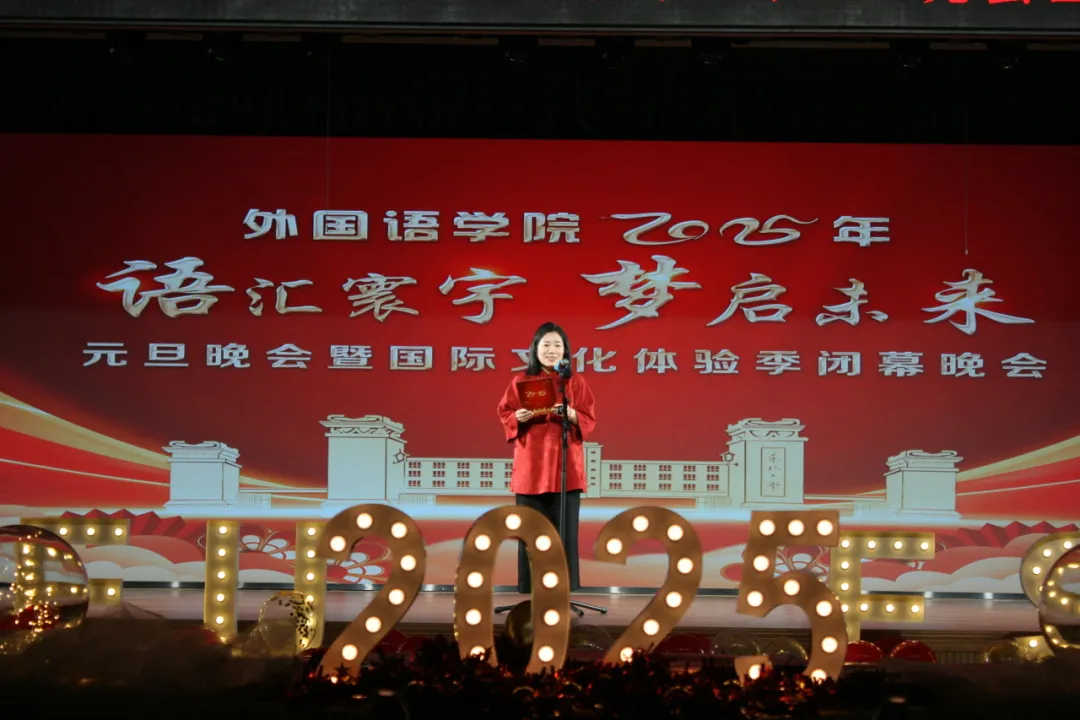 晚会上,六间房 院长张威发表新年贺词,回顾了学院过去一年在教学科研、学科建设、教师队伍建设、国际交流及学生工作等方面的成绩,并对即将到来的2025年作出了新的展望。张威希望,学院全体师生在新的一年里团结一心,踔厉奋发,不辱使命,勇于担当,在学校“双一流”建设的新征程中贡献外语人的力量。