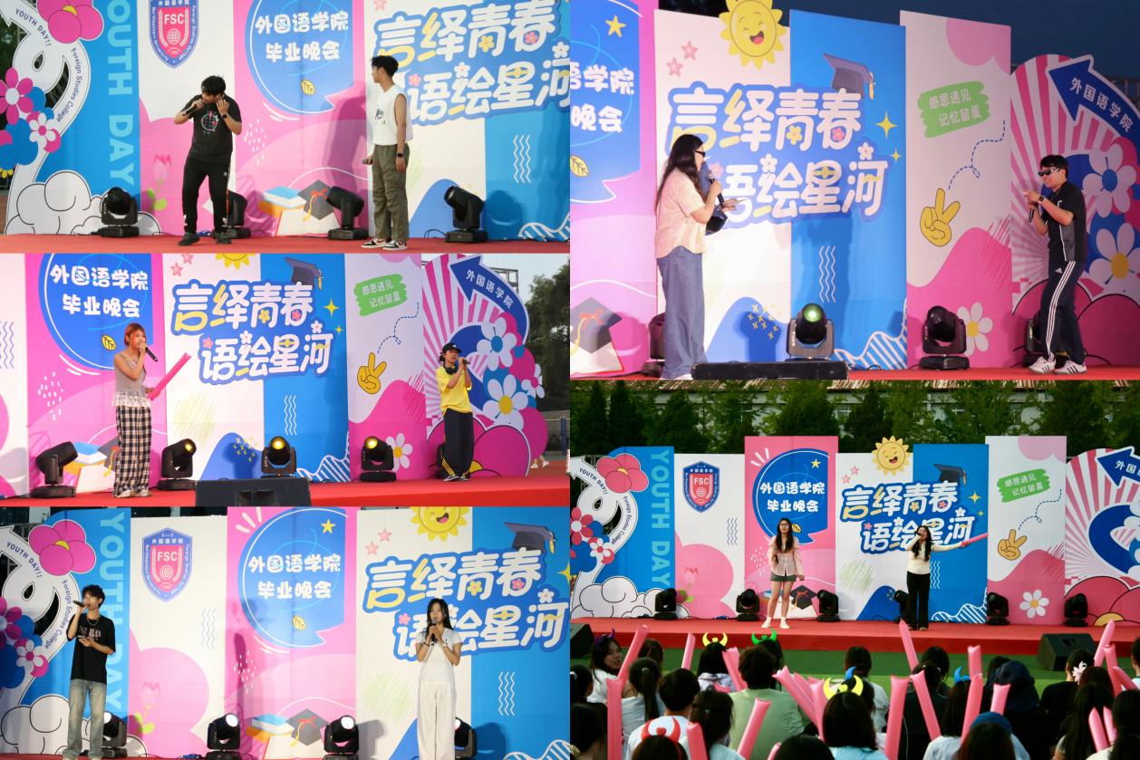 整场晚会节目形式多样,精彩纷呈。歌唱、舞蹈等精心编排的节目轮番登场,营造出轻松活泼、欢快热烈的氛围,现场掌声喝彩声此起彼伏。毕业生们以饱满的热情和精彩的表演,呈现了一场视听盛宴,充分展现了2025届外院学子朝气蓬勃、昂扬奋进的青春风采与精神风貌。在优美动人的歌声与饱含真挚祝福的氛围中,晚会圆满落幕。