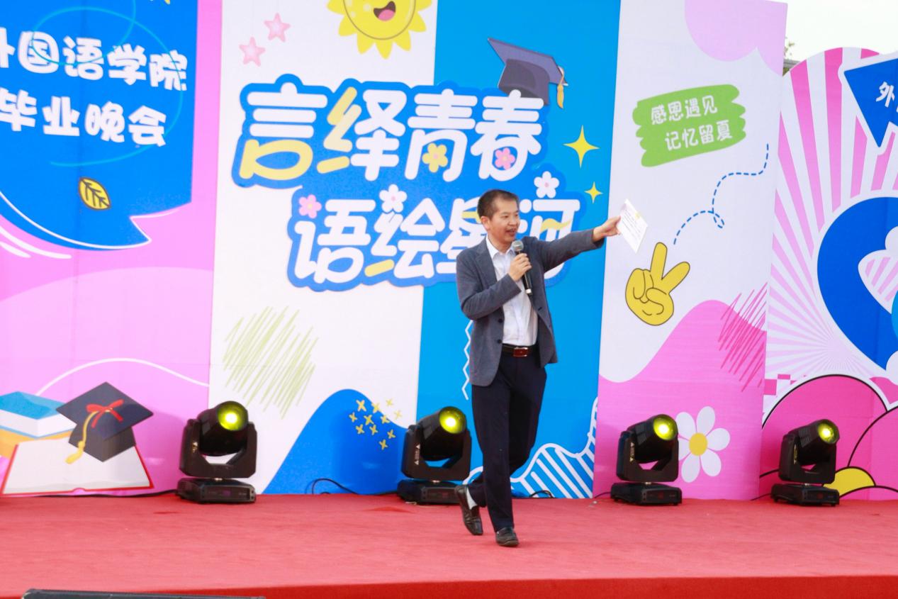 晚会伊始,张威深情寄语毕业生。她回忆了与同学们相识相见的情景,回顾了同学们在国际文化体验季、英文戏剧大赛、各专业学科竞赛、元旦晚会、运动会等校园活动中的风采。她衷心祝福2025届毕业生前程似锦,勉励毕业生未来继续保持对语言的热忱,在各个行业领域书写精彩篇章。