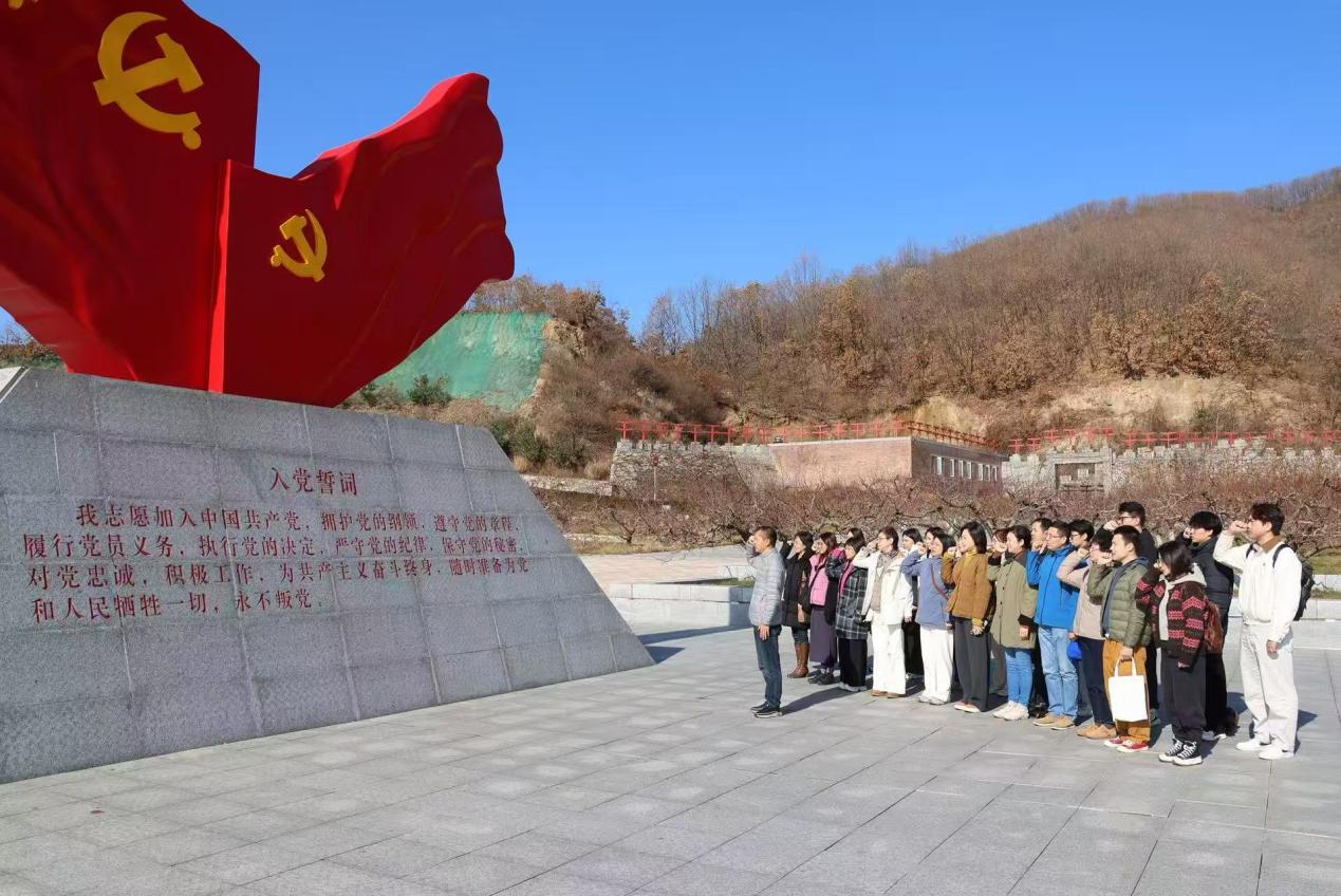 活动中,党员师生首先学习了大梨树村原党支部书记毛丰美同志的先进事迹。三十余年间,毛丰美带领村民秉持“干”字当头理念,通过开荒山、种果树、办企业、搞旅游,带领村民共同致富。广场“干”字碑诠释的“苦干、实干、巧干”内涵,引发师生共鸣。随后,学院党委书记张满胜带领全体党员重温入党誓词,强化了责任担当。在村史馆,师生通过文字、图片、实物及纪录片,系统了解了大梨树村在党的领导下的奋斗历程,深化了对“干字精神”时代价值的认知。